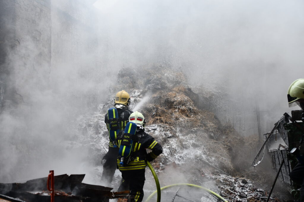 Die getroffenen Maßnahmen führten rasch zum Löscherfolg und die Brandlast konnte gebrochen werden. Für einen höheren Löscheffekt erfolgte die Zugabe von Netzmittel beim Löschen der im Gebäude befindlichen Strohballen. Um die letzten Brandherde zu erreichen, mussten landwirtschaftliche Maschinen aus dem Gebäude geschleppt werden.