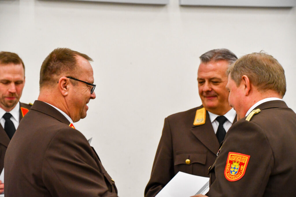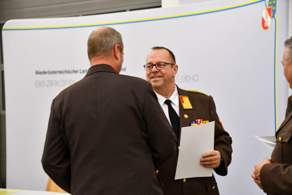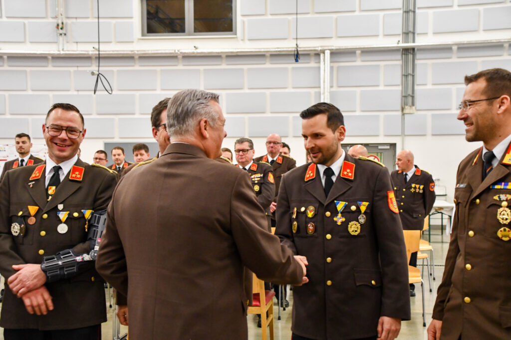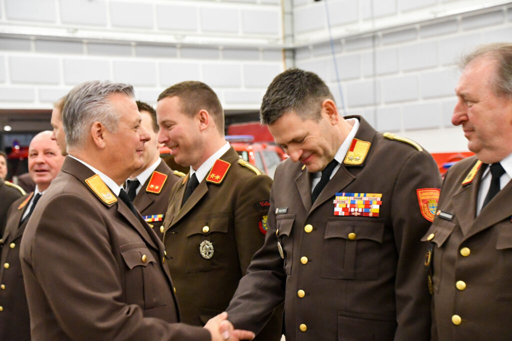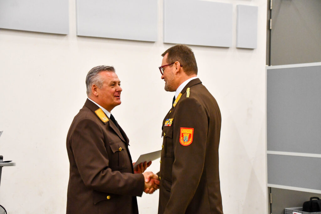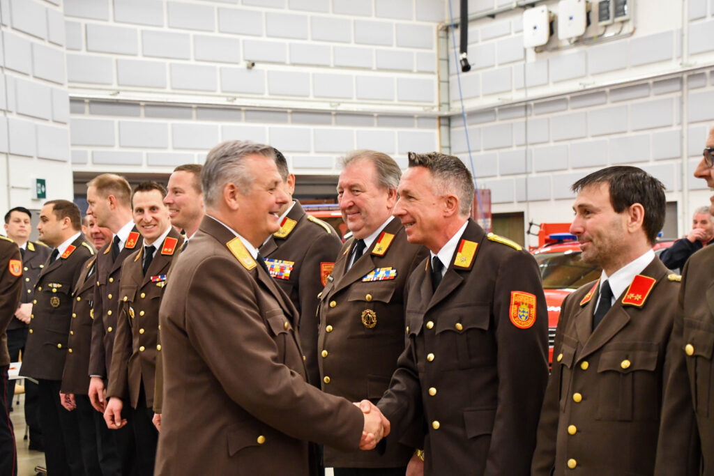 Als Dank und Anerkennung für die erbrachten Leistungen wurde BR Michael Berger, BR Harald Kellner und HBI Michael Zotter der Dientsgrad Ehrenhautptbrandinspektor verliehen.