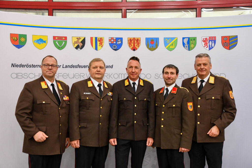 (v. l. n. r.) LFR Christian Edlinger / EHBI Harald Kellner / BR Andreas Perner / ABI Daniel Kolber / LBD Dietmar Fahrafellner, MSc